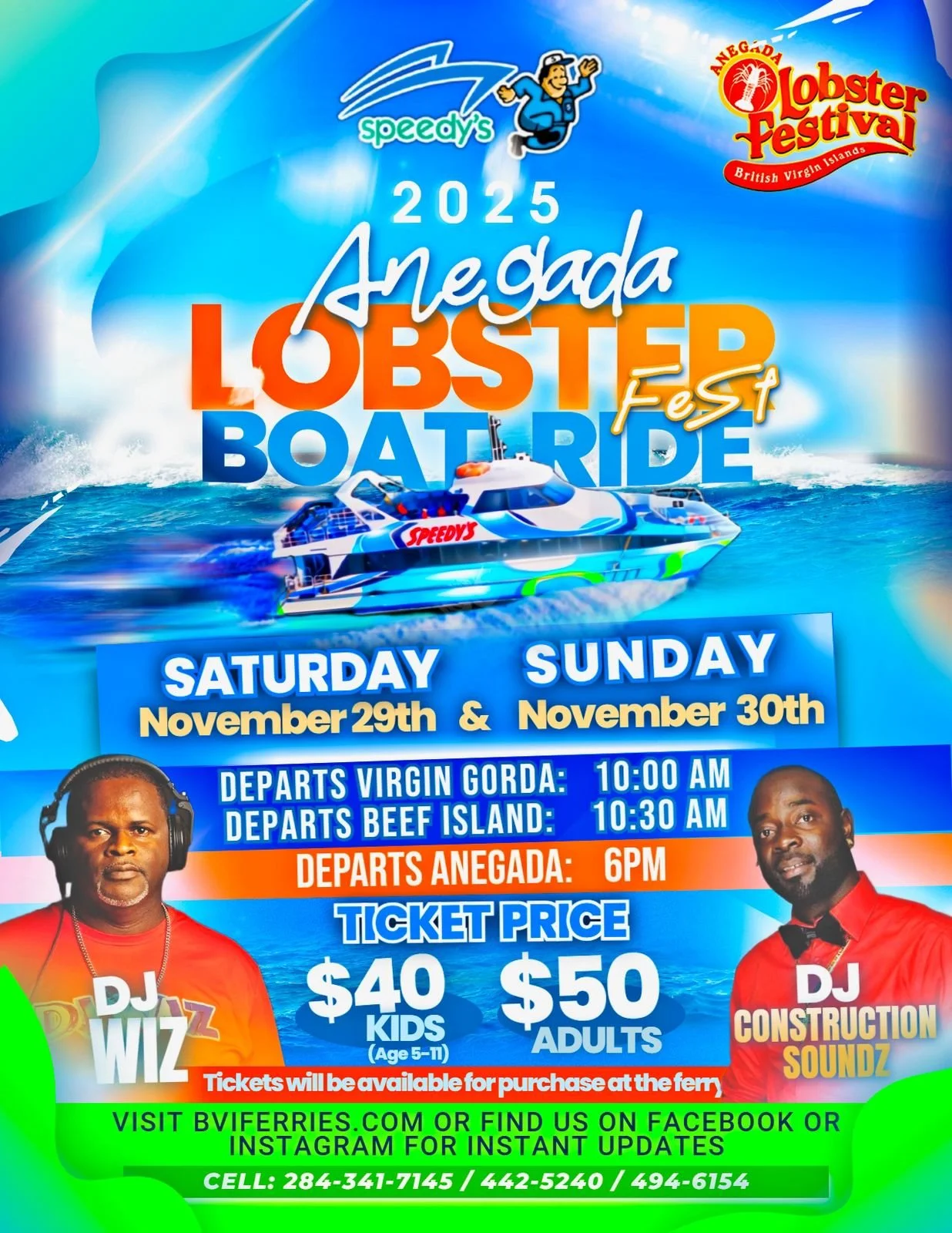 Join us as Anegada turns up the flavor for one of the most mouth-watering weekends of the year! From buttery grilled lobster to island beats, beach vibes, and ferry rides that make the journey part of the fun, Speedy’s has you covered.